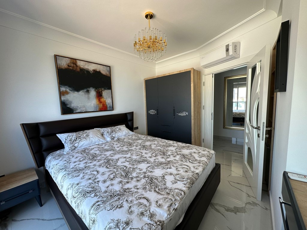 Апартаменти розташовані на 9-му поверсі і займають просторі 120 м², з двома балконами, звідки відкривається приголомшливий вид на море, природу і басейн. Повне меблювання в сучасному стилі дає змогу негайно заселитися або здавати житло в оренду без додаткового клопоту. Функціональне планування 2+1 забезпечує комфортне розміщення для сім’ї або компанії гостей, а продумане зонування створює відчуття свободи і затишку.